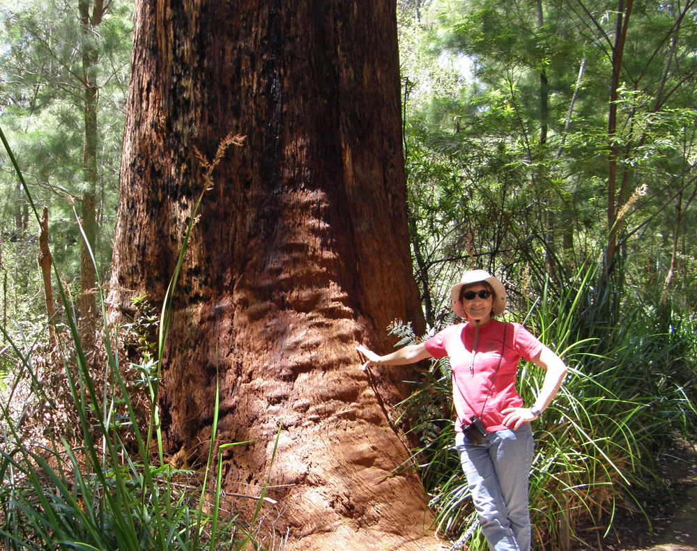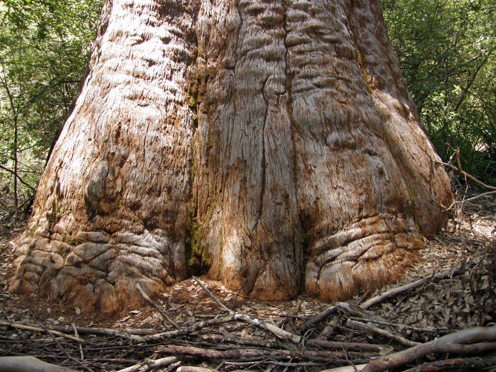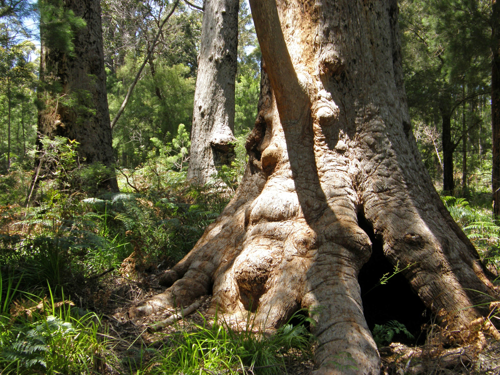 | Cette espèce d'Eucalyptus peut vivre jusqu'à 400 ans et est l'un des plus gros arbres de l'Australie de l'Ouest. Ils peuvent mesurer jusqu'à 16 mètres autour de la base et plus de 60 mètres de hauteur. Known to live up to 400 years, the red tingle is one of the biggest trees in Western Australia. They can measure up to 16 metres around the base and grow over 60 metres tall. | |