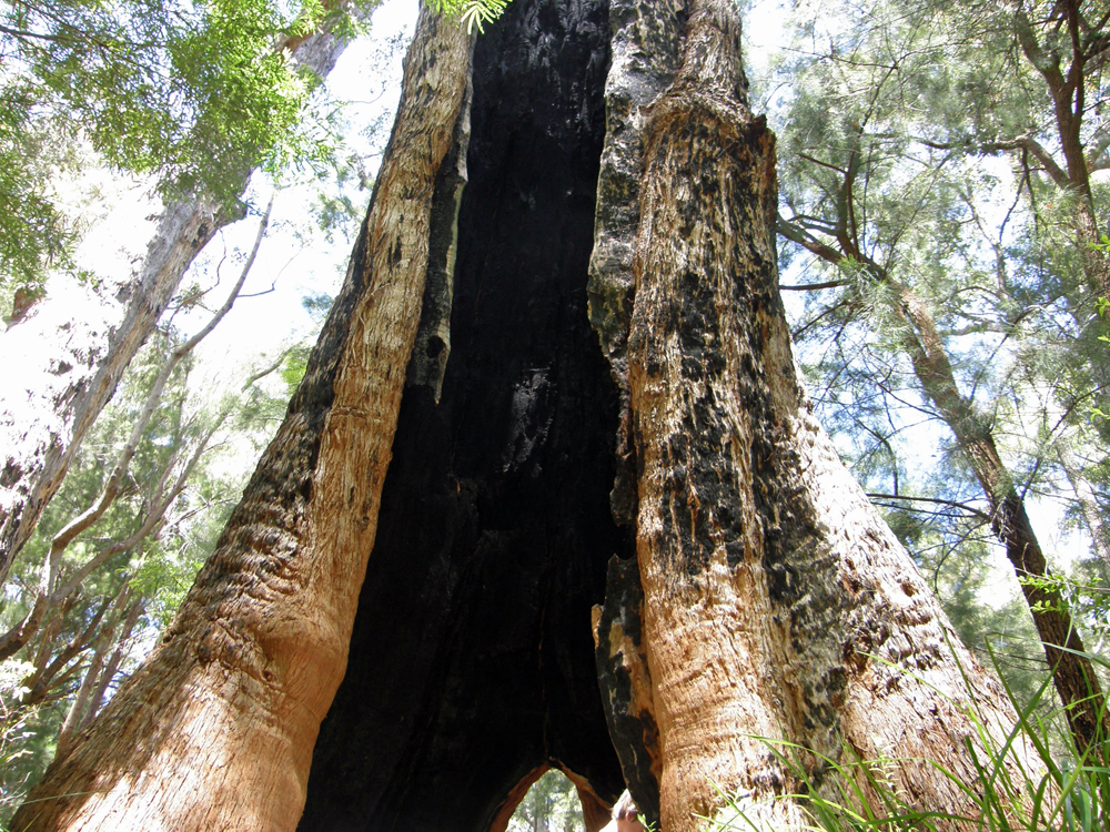 | Beaucoup de ces arbres vivants ont des troncs creux et calcinés après avoir connu plusieurs feux de forêt. Several of these trees have hollow calcinated trunks, after they survived many forest fires. | On dirait la forêt des "Ents" Looks like the "Ents" forest |