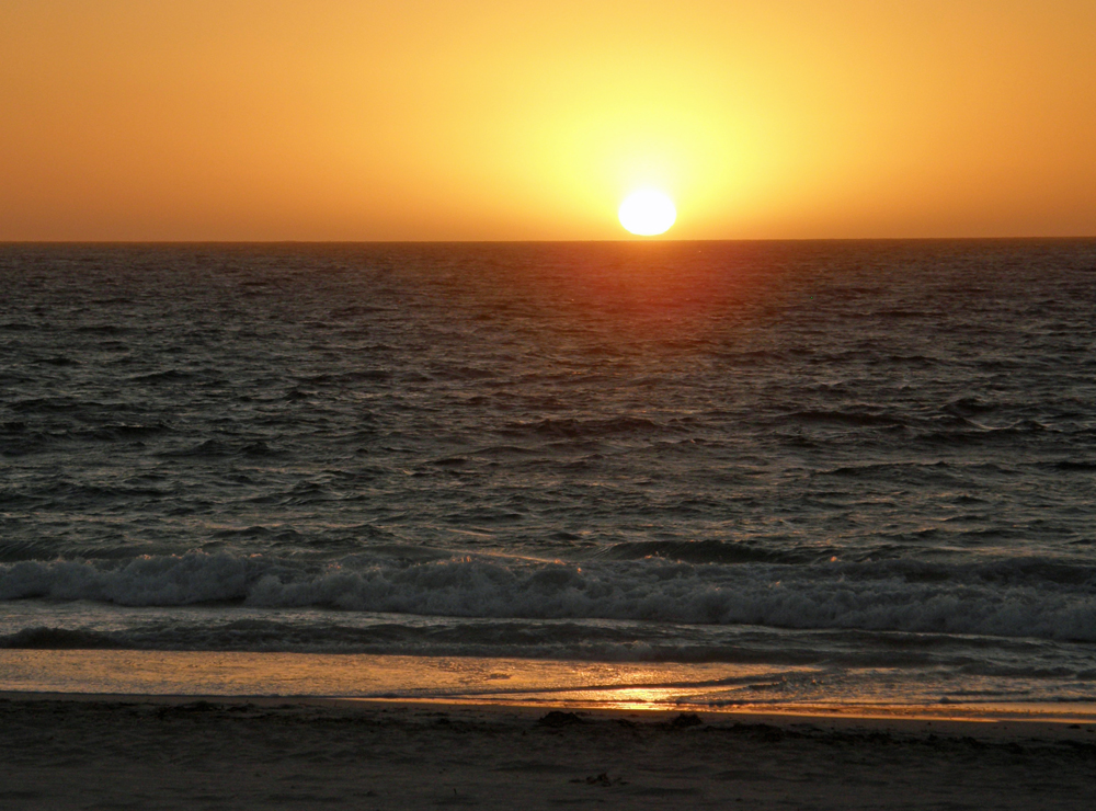 | Voici le BBQ australien: une simple plaque chauffante. Here is the Australian BBQ: a simple hot plate. | Notre dernier coucher de soleil sur l'Océan Indien. Our last sunset on the Indian Ocean. |