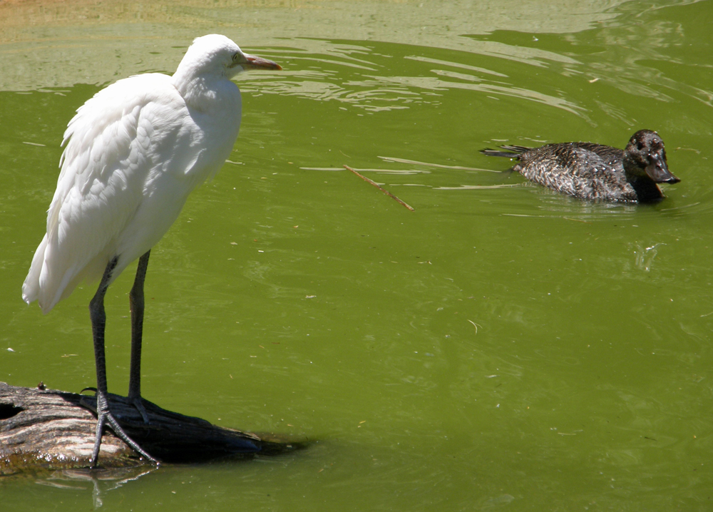 | Aigrette intermédiaire Intermediate Egret | Aigrette intermédiaire et Érismature Australe femelle Intermediate Egret and female Blue-Billed Duck |