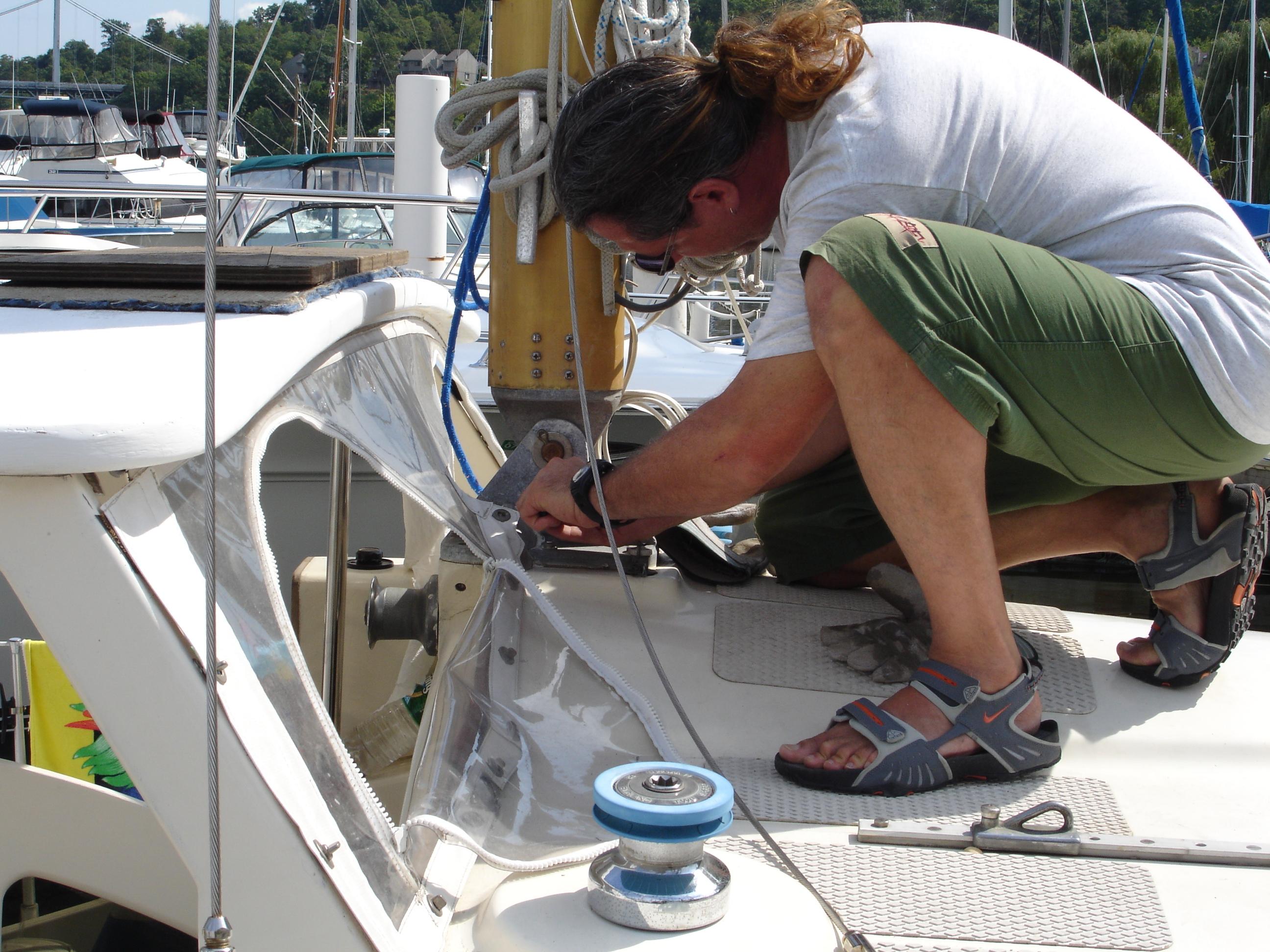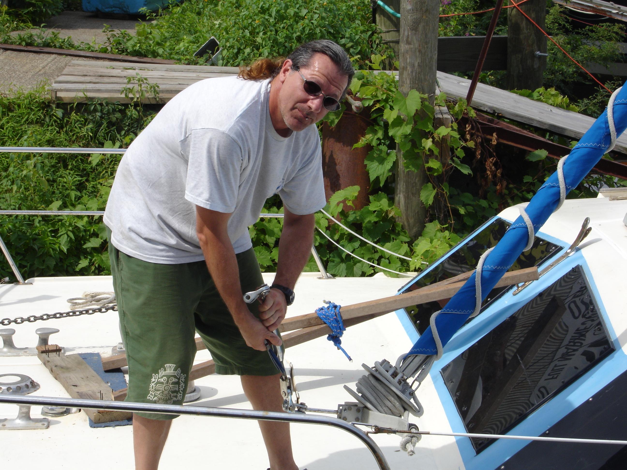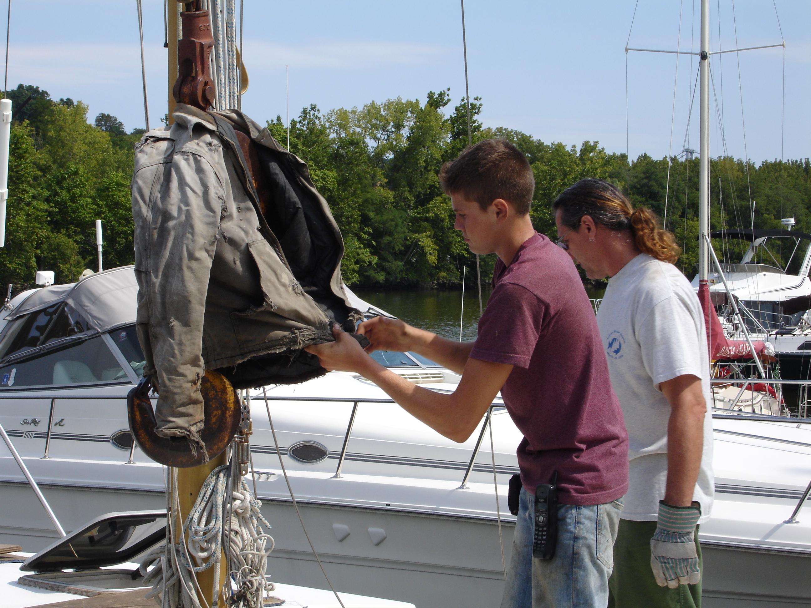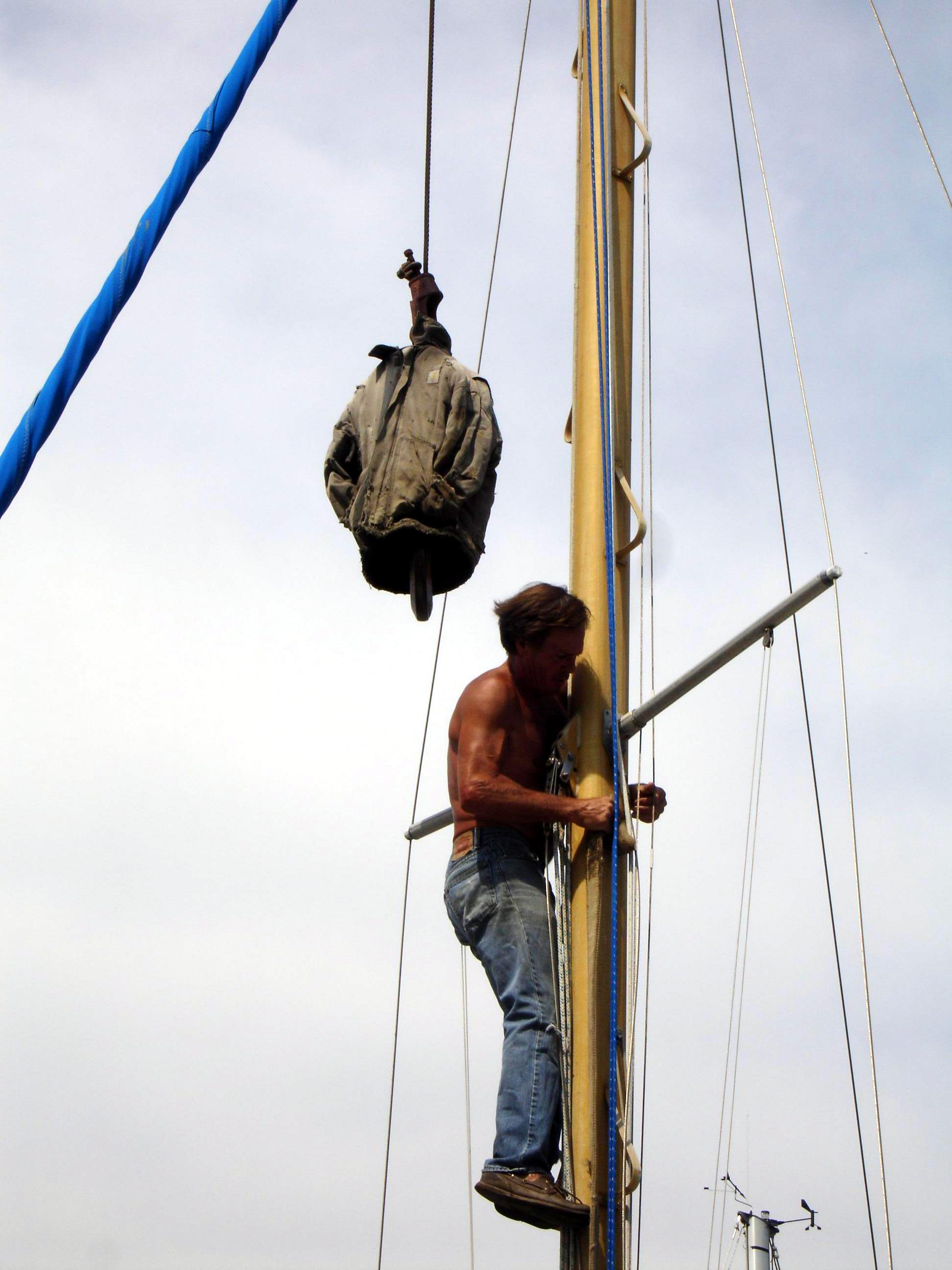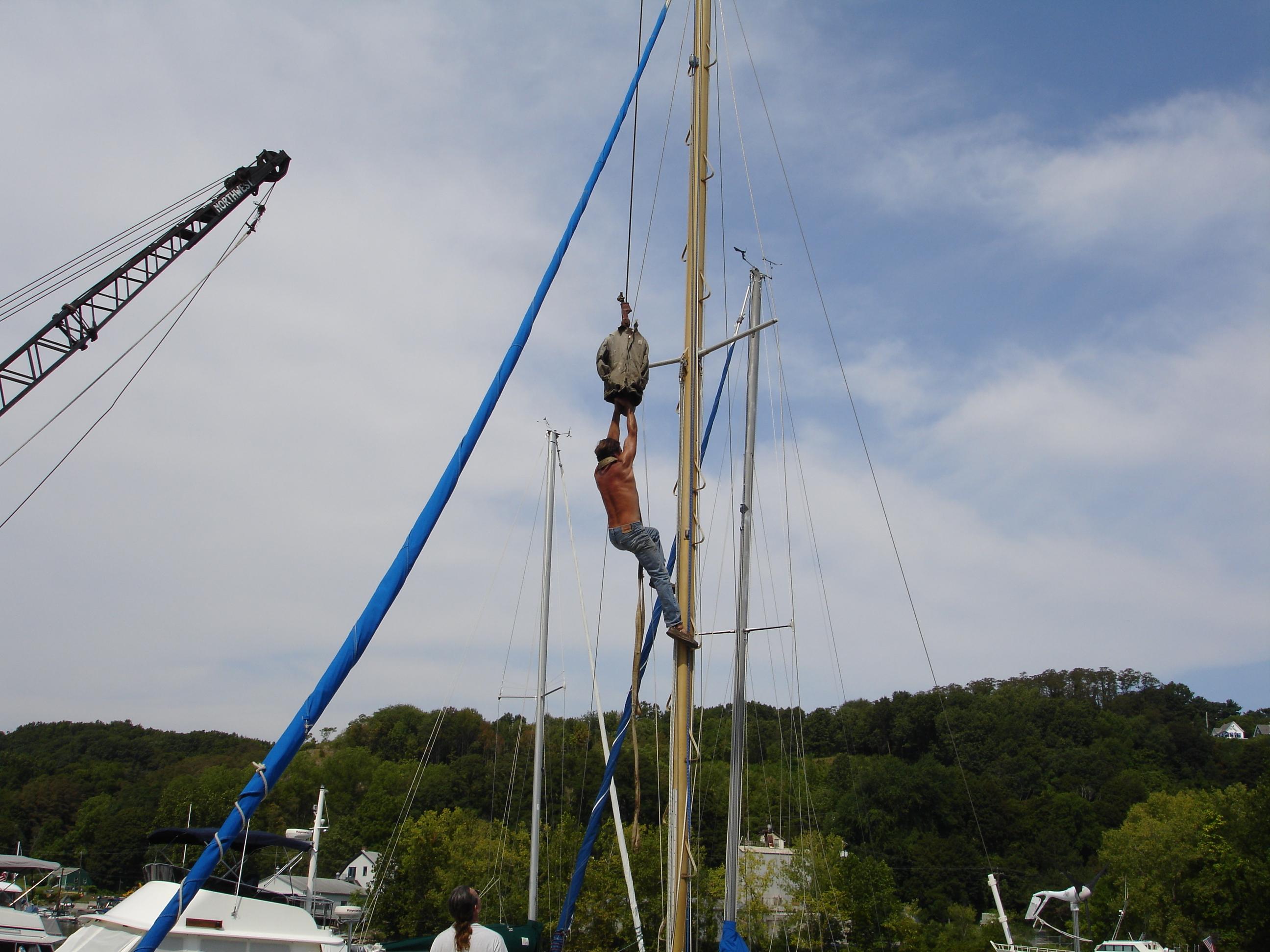 and Sean lifted him up to the spreaders. There, he tied a big