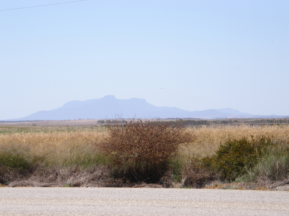 | Une journée sur la route. Seule montagne à l'horizon dans tout le paysage du bush. A day on the road. A lonely mountain on the horizon in the bush landscape. |
