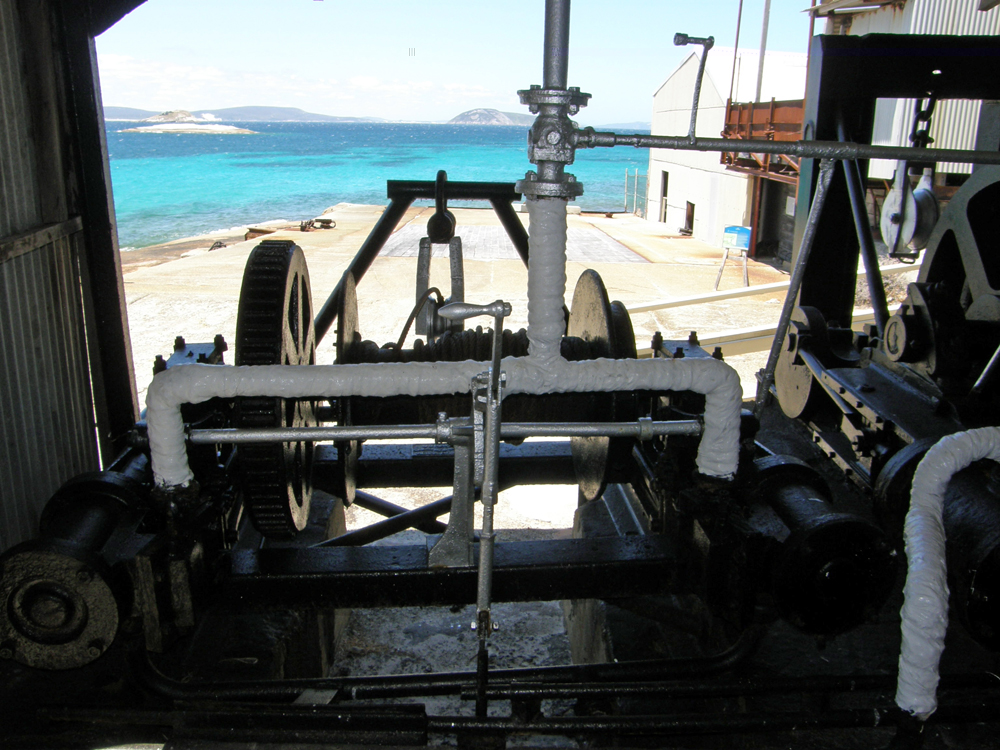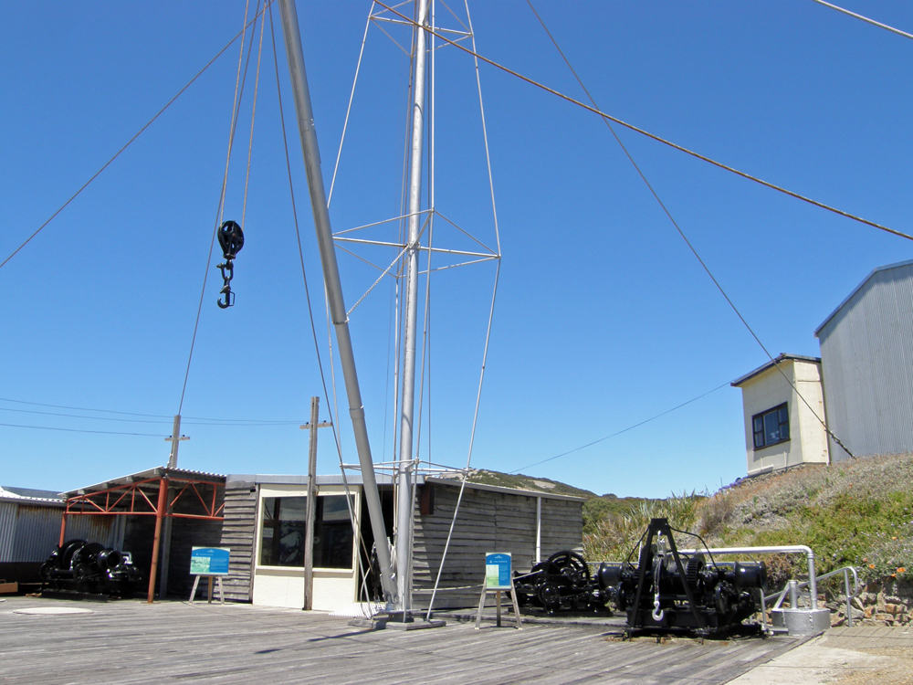 | La dernière usine de traitement des baleines fut fermée en 1978. Aujourd'hui c'est devenu un musée où on peut voir les installations telles qu'elles étaient lorsqu'encore en activité. The last whaling station has been closed in 1978. Nowadays it's a museum where we can see all the installations sush as they were when the company was still running. | C'est ici qu'on hissait les baleines sur la terre ferme. It was here that they lifted the whales on terra firma. |