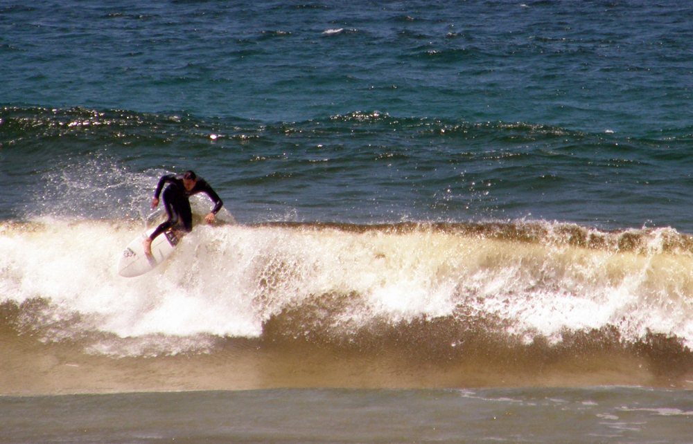 | Puis un arrêt à cette plage où des surfers de tous âges se frottent aux vagues avec plus ou moins de succès... Then, we stop at a beach where surfers of all ages tangle with the waves with more or less success.. | |