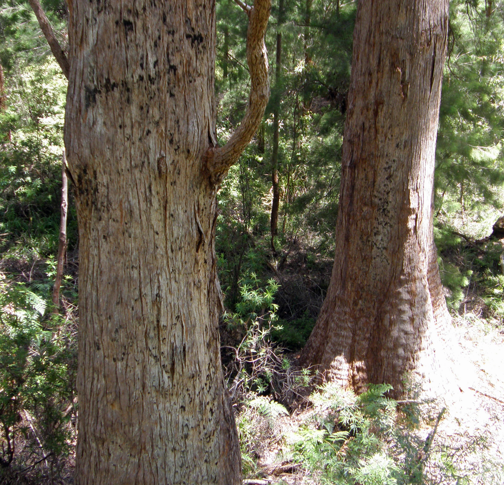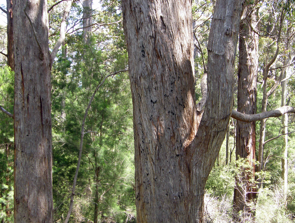 | Cette espèce d'Eucalyptus peut vivre jusqu'à 400 ans et est l'un des plus gros arbres de l'Australie de l'Ouest. Ils peuvent mesurer jusqu'à 16 mètres autour de la base et plus de 60 mètres de hauteur. Known to live up to 400 years, the red tingle is one of the biggest trees in Western Australia. They can measure up to 16 metres around the base and grow over 60 metres tall. | |