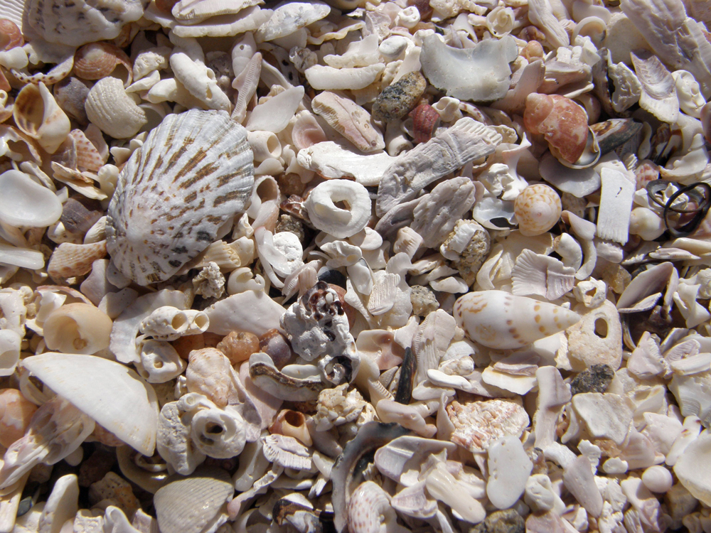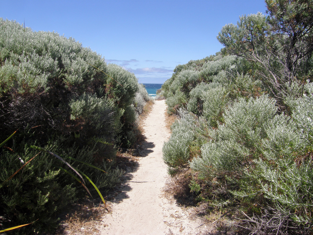 | À certains endroits, la plage n'est pas composée de sable, mais de millions de coquillages. On certain spots, the beach is not made up of sand, but of milions of shells. | Le sentier menant au bord de la mer. The trail leading to the shore. |