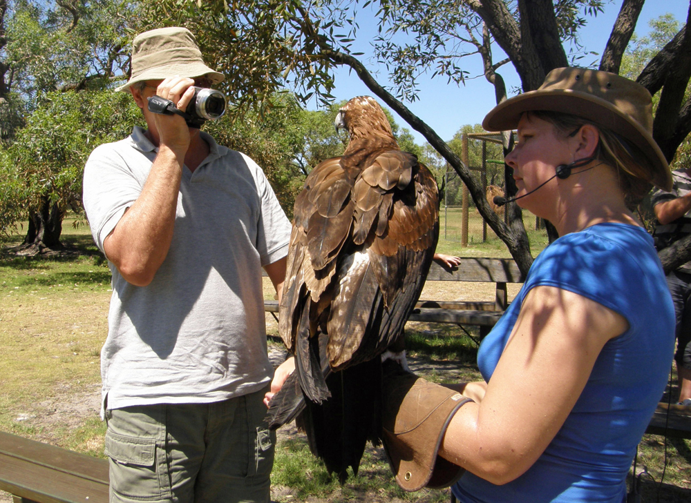 | Nous visitons le Whiteman Park, une réserve récréative et de conservation. Nous avons assisté à la présentation du Centre des Oiseaux de Proie de l'Australie de l'Ouest. We visit the Whiteman Park, a conservation and recreation reserve. We attended a presentation by the Western Australian Birds of Prey Center. |