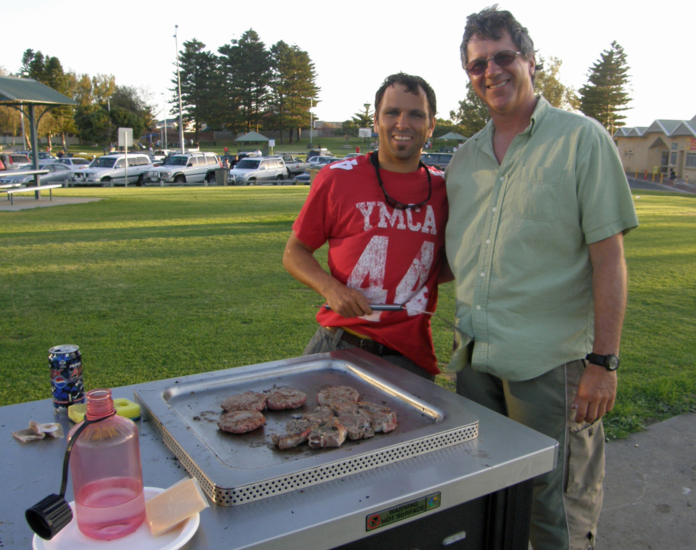 | Voici le BBQ australien: une simple plaque chauffante. Here is the Australian BBQ: a simple hot plate. | Notre dernier coucher de soleil sur l'Océan Indien. Our last sunset on the Indian Ocean. |