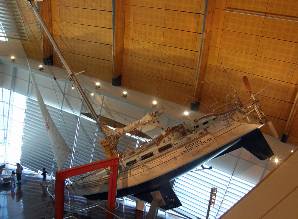 | Le Parry Endeavour, voilier de Jon Sanders, le mythique navigateur australien, qui, en 1988, effectue un triple tour du monde à la