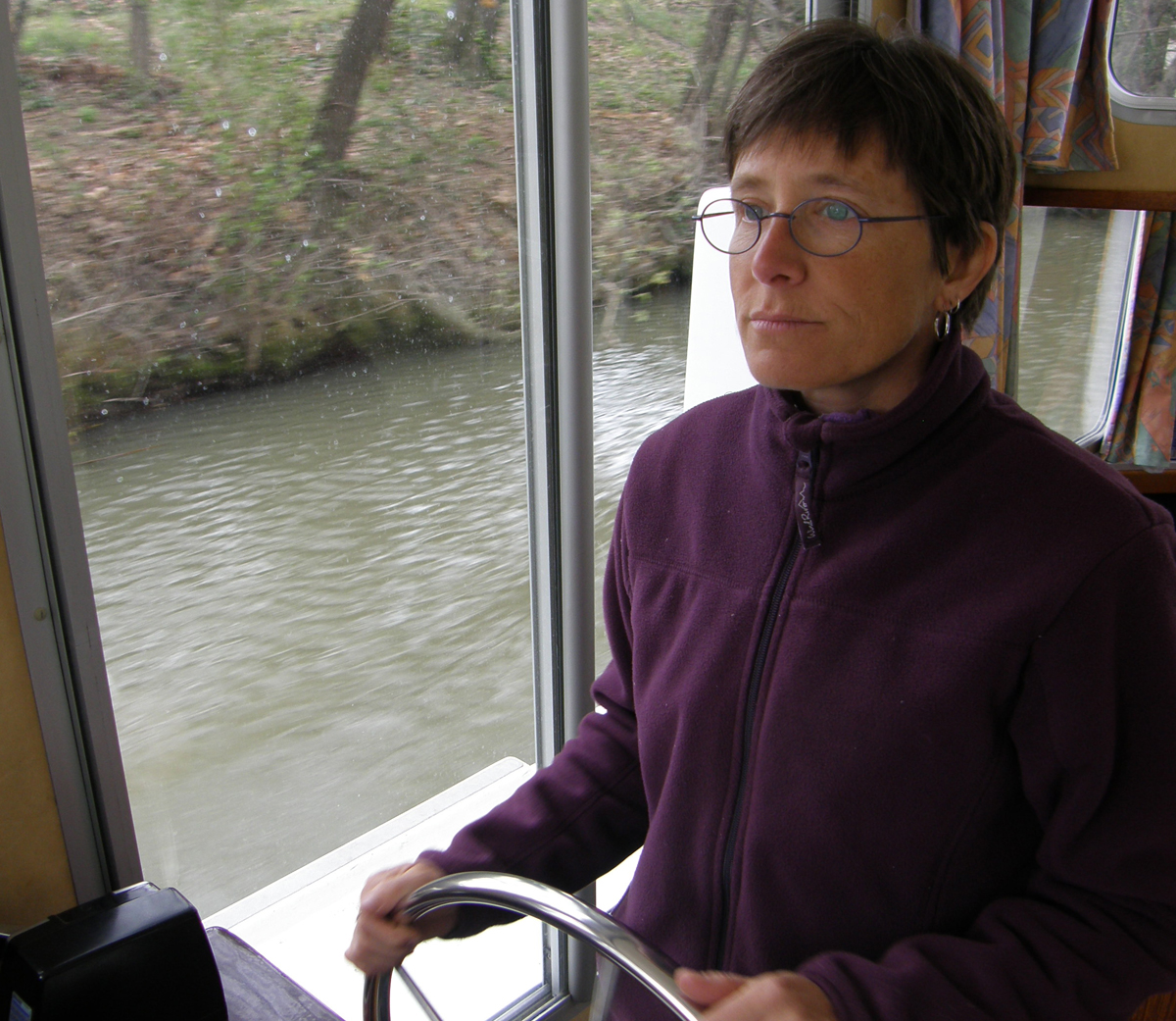 Lise est à la barre pendant que Marc nourri un cygne.