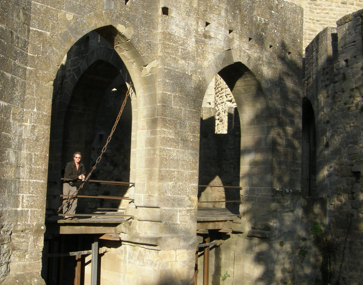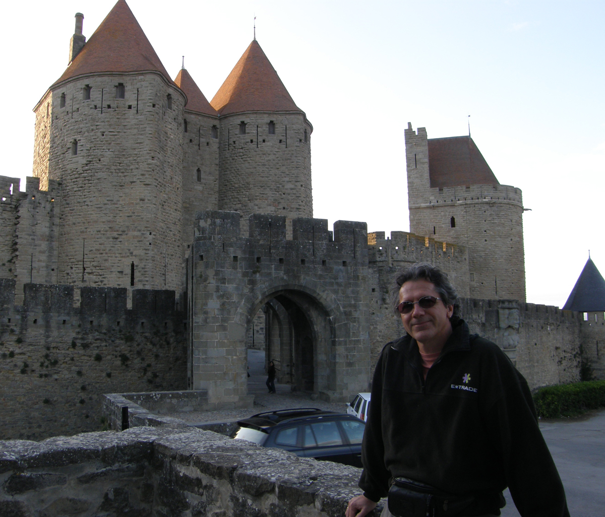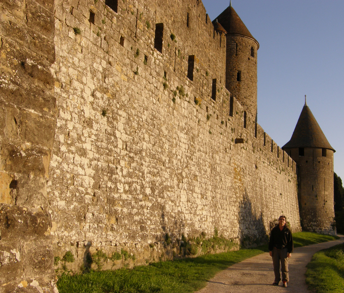 Marc in front of the "Porte Narbonnaise", so-called because it opens to the East, to the side of the city of Narbonne. |