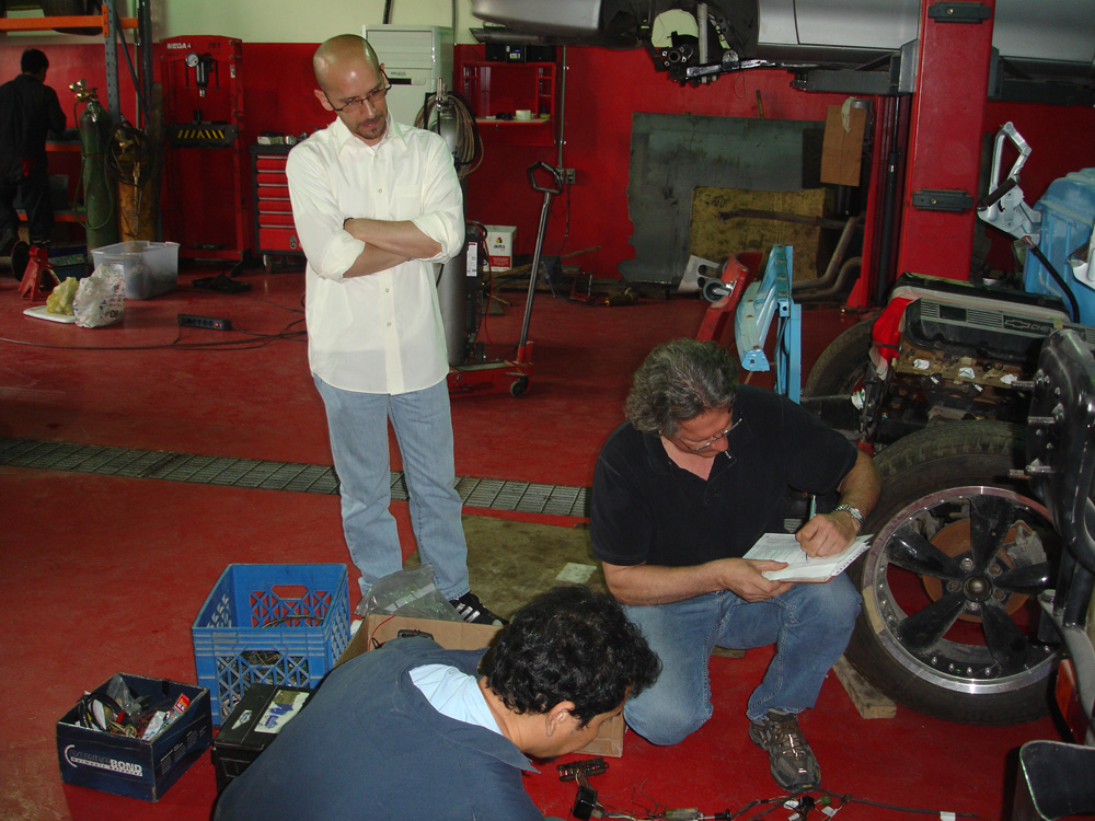 The 2 mechanics start to work immediately.