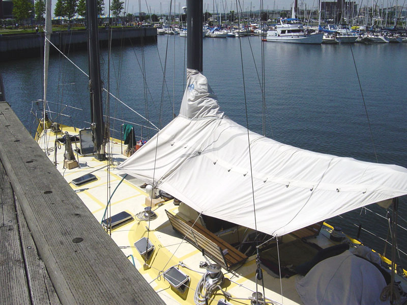 | Sur les quais de Québec était aussi amarrée La V'limeuse, cette goélette de 14 mètres qui a fait le tour du monde avec à son bord une famille québécoise bien sympathique qui nous ont fait découvrir leurs périples à travers leurs livres. | ||||||||||||||||||||||||||||||||