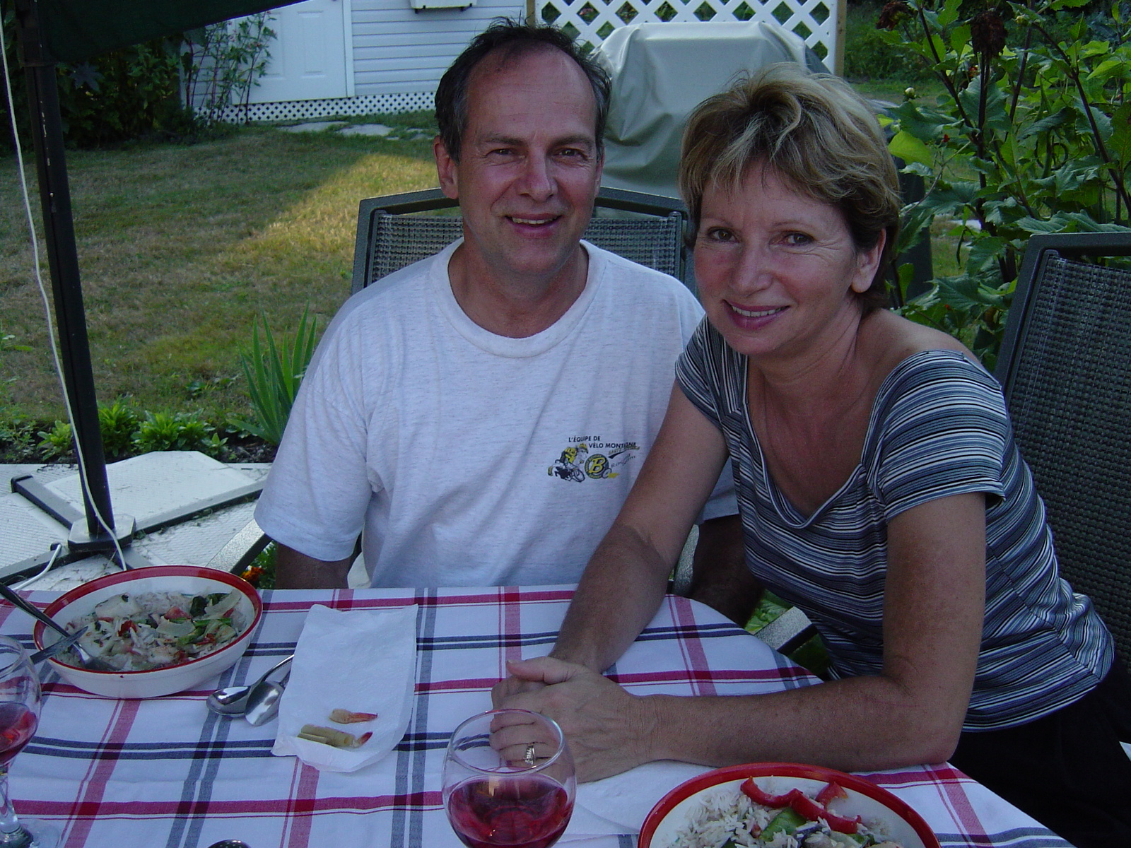 Granby. My good friend Estelle and her husband Paul, who invited us over for a meal and a dip in their spa, in St-Alphonse de Granby. |