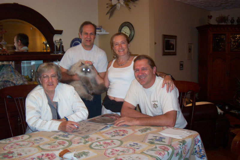 ma tante Laurette, Linda, Simon et Normand. We spent that evening at my cousin Normand's house (Linda's brother), who lives in Canton Shefford, near Granby. From left to right: Thérèse, Normand's wife, mom's legs, Aunt Laurette, Linda, Simon and Normand. |