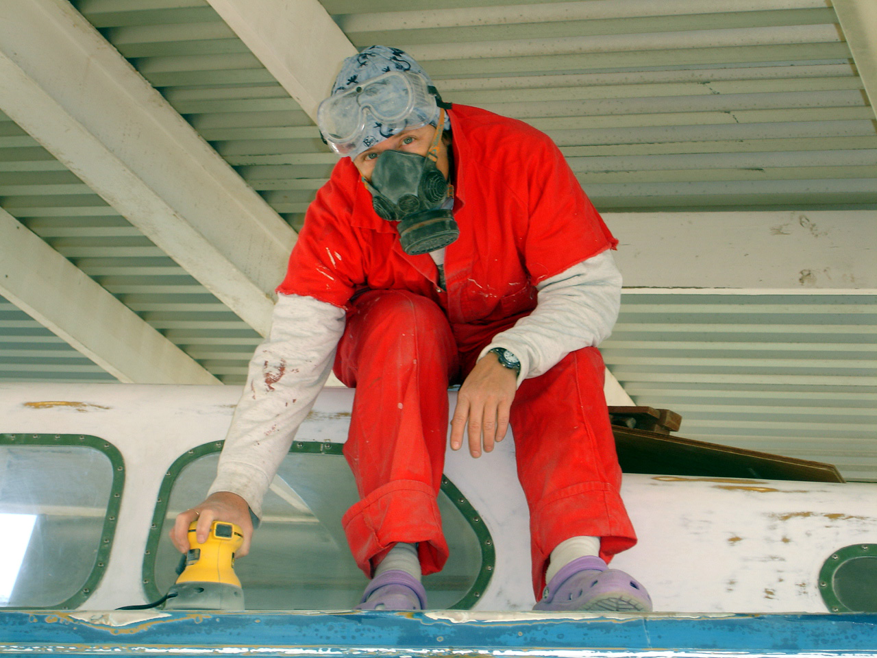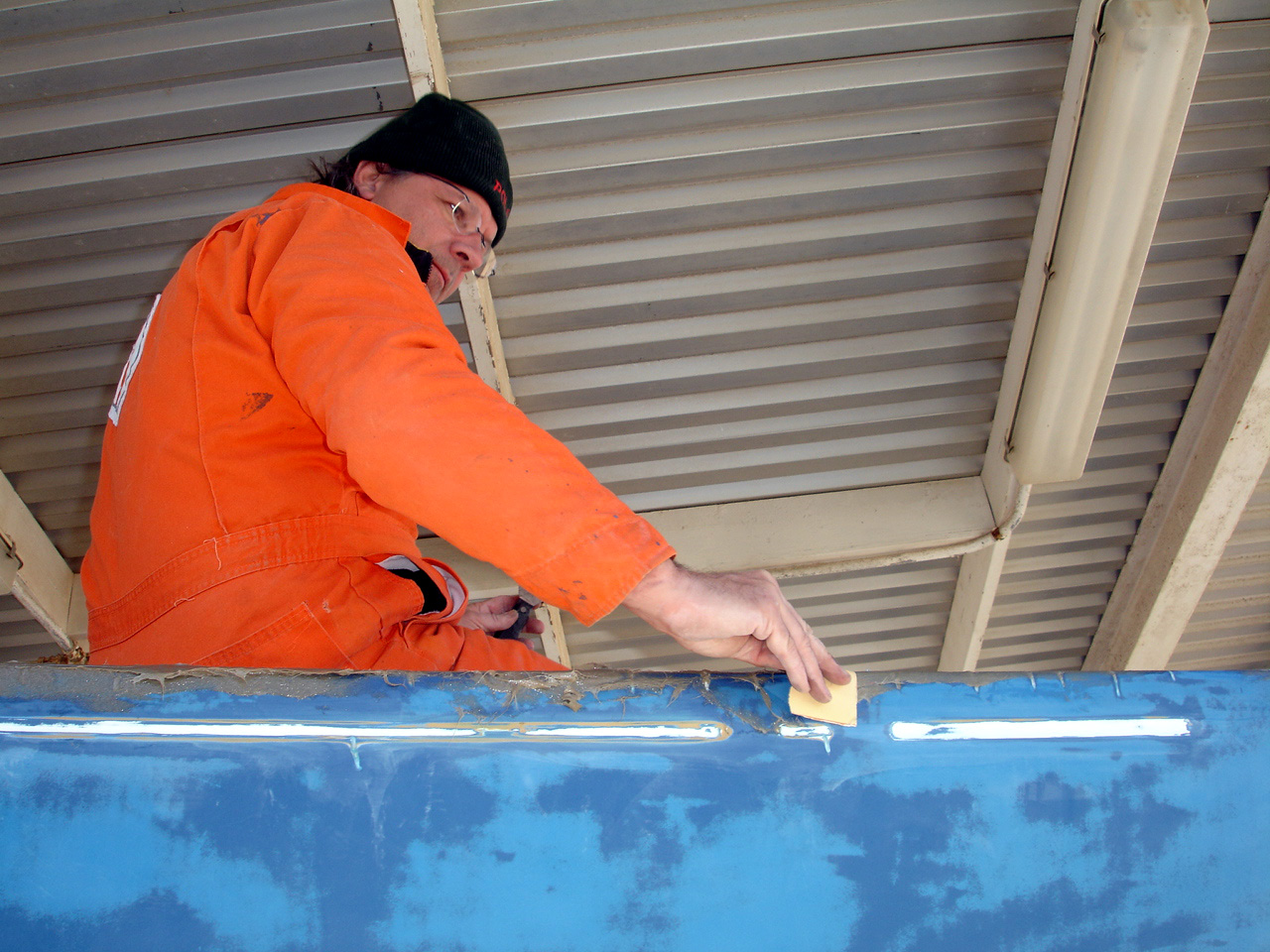 sanding the deck. |