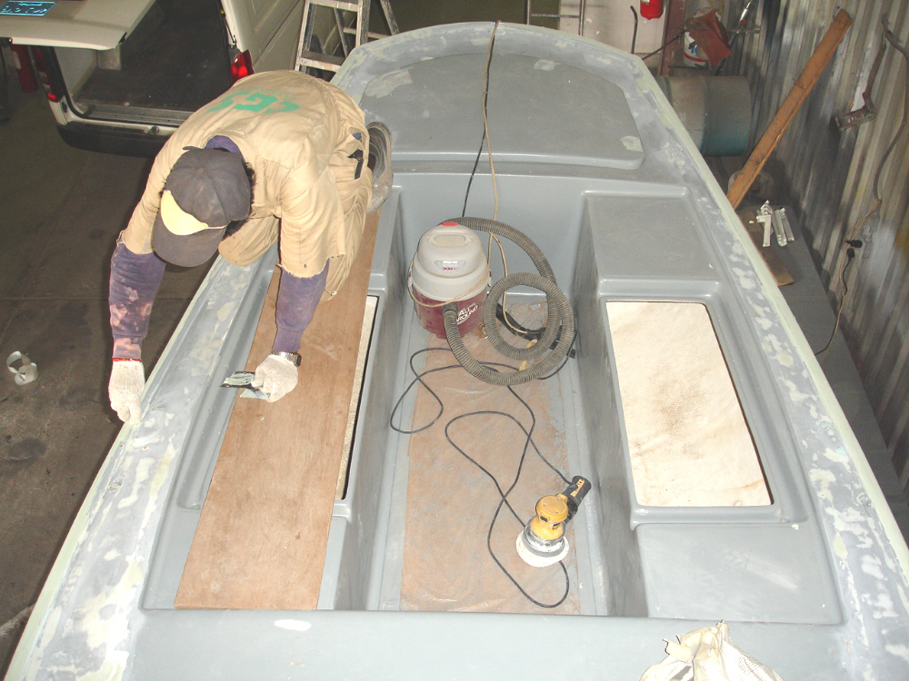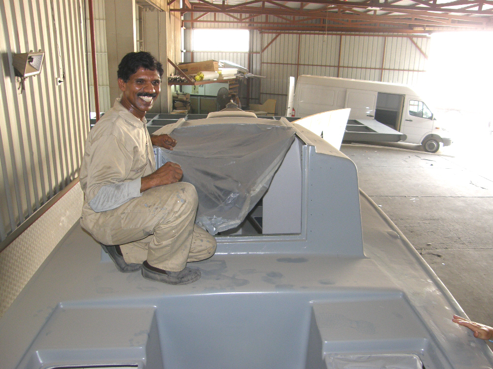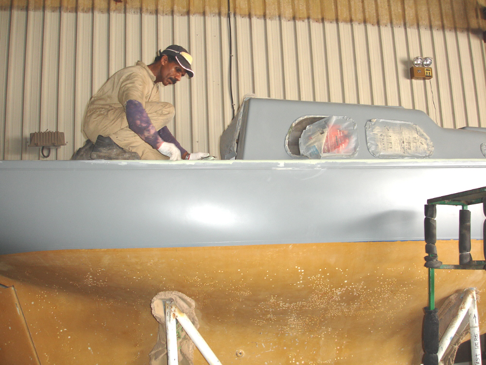 There, Marc and Morali put the "anti-skid" paint on the deck.