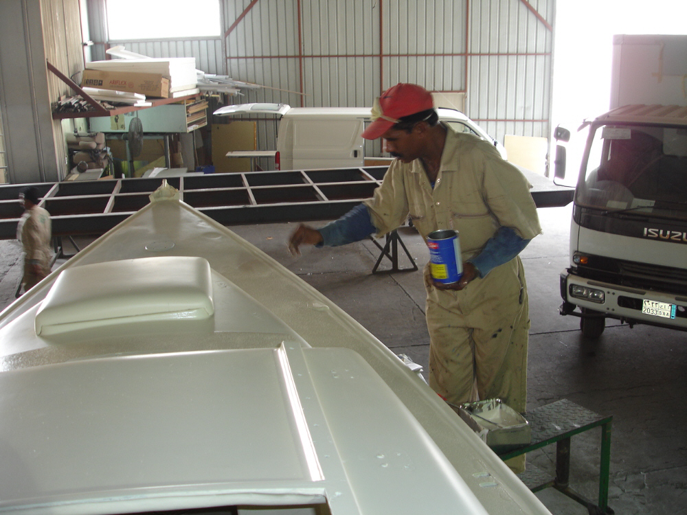 It consist of one coat of paint with the roller, then sprinkling a mix of sand and fiberglass powder. |