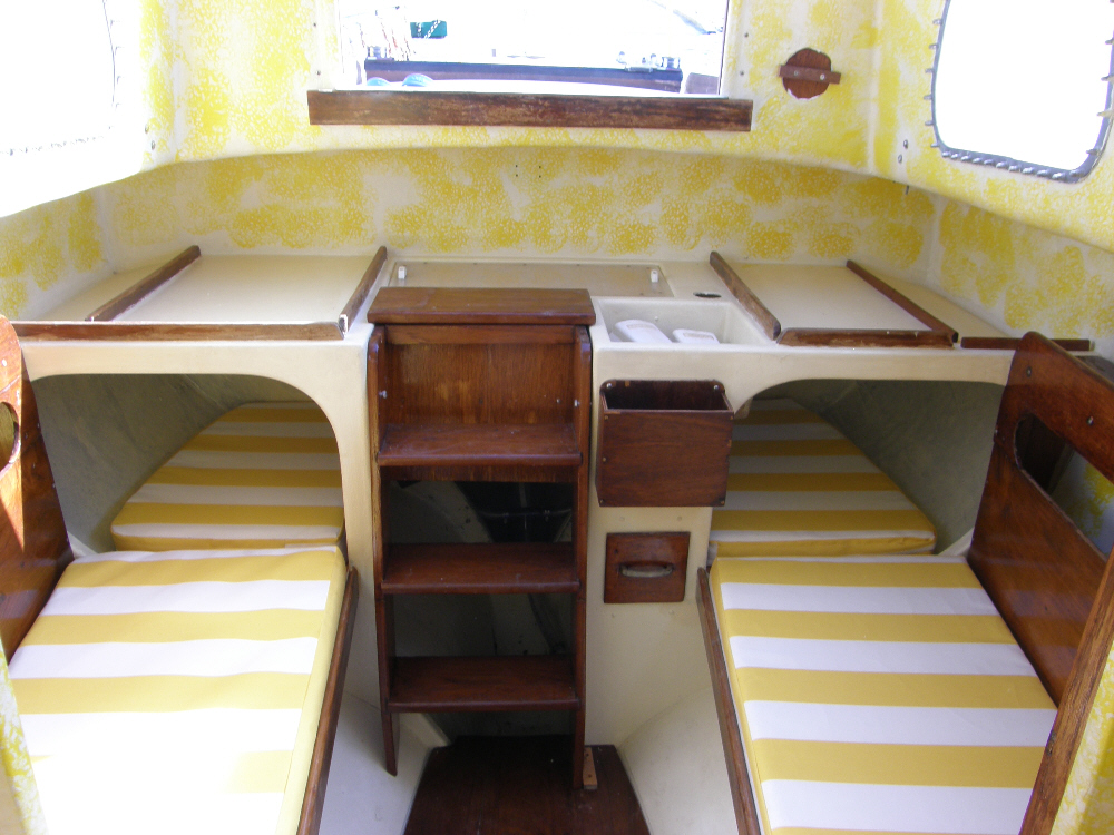 | Tout le bois fut sablé puis passé à l'huile de teck. All the wooden parts have been sanded, then brushed with teak oil. |