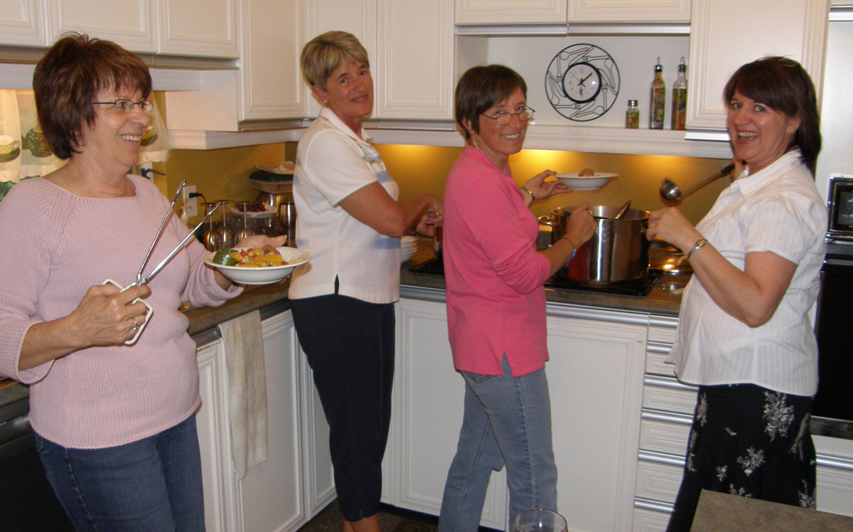 | Mes trois belle-soeurs, Denise, Diane et Louise sont là pour m'aider au service. My three sisters-in-law, Denise, Diane and Louise are helping me to serve.. | |