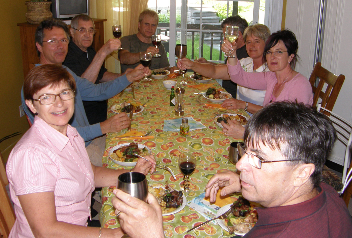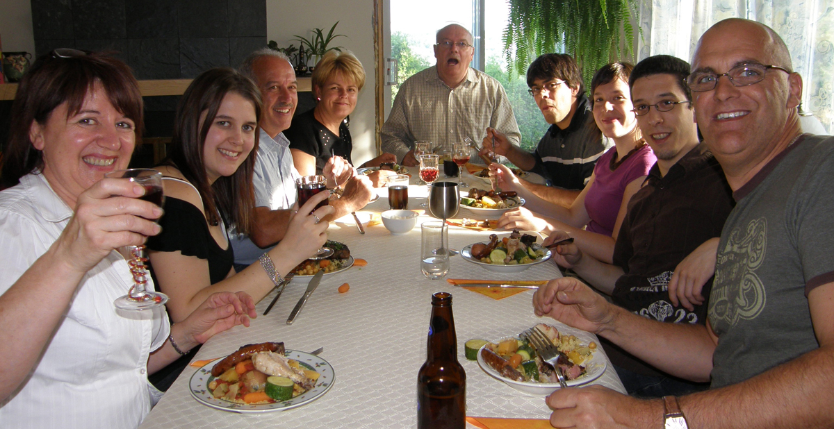 | Comme le veut la tradition depuis quelques années, Lise et Marc se doivent de préparer un repas pour toute la famille. Nous étions donc une vingtaine ce soir-là à déguster le Couscous Royal de Lise et les fameux Choux à la Crème de Marc ! As tradition goes since a few years, Lise and Marc have to prepare a meal for the whole family. We were about twenty people to enjoy Lise's Royal Couscous and Marc's famous Cream Puffs ! | |