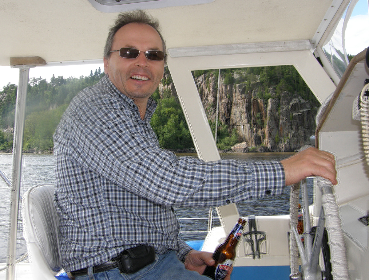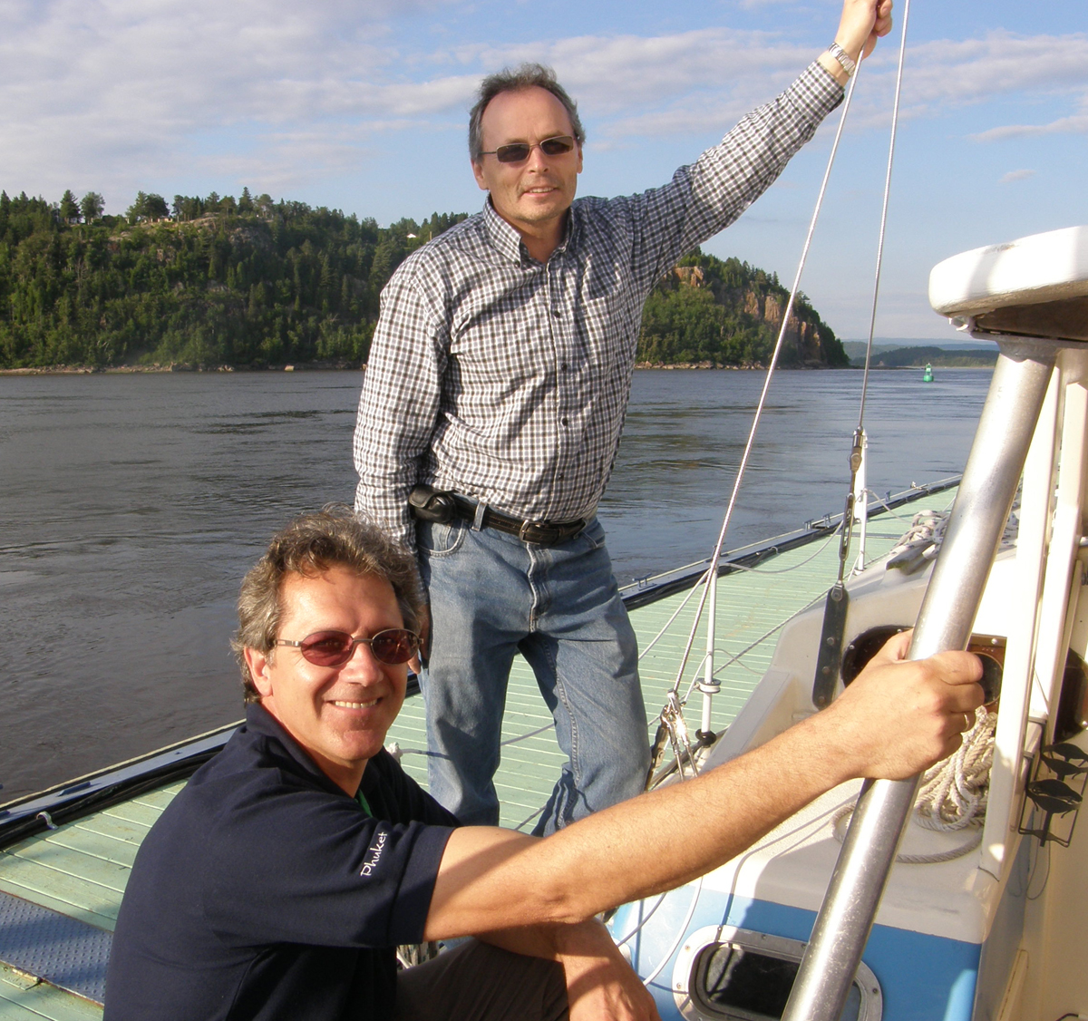 | Les derniers à venir se promener sur l'eau furent Pierre, le beau-frère de Marc et sa conjointe Marlène. The last ones to come sailing with us were Pierre, Marc's brother-in-law, and his wife Marlène. | |