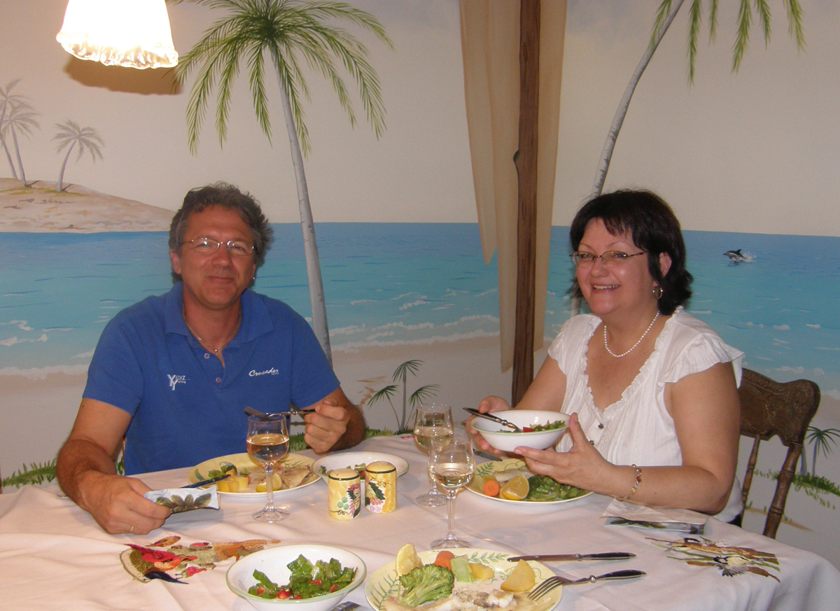 | Nous vous avions déjà parlé de Doris et de ses talents de peintre sur la page de nos vacances en 2004. Cliquez ici pour voir quelques unes de ses oeuvres We had already mentioned the talented Doris on the page of our 2004 vacation. Click here to see a few of her paintings. | |