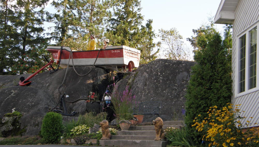 | Le terrain est assez original... avec ce bateau de pêcheurs jouqué sur le cran ! The landscaping is quite original... with this fishing boat up on the rock ! |