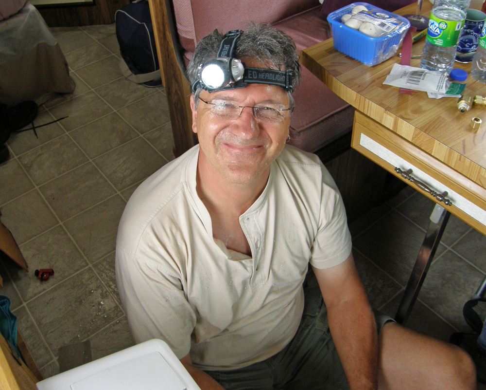 like when the pipes break and there's a flood under the RV's sink. Then Marc has to act as a plumber !