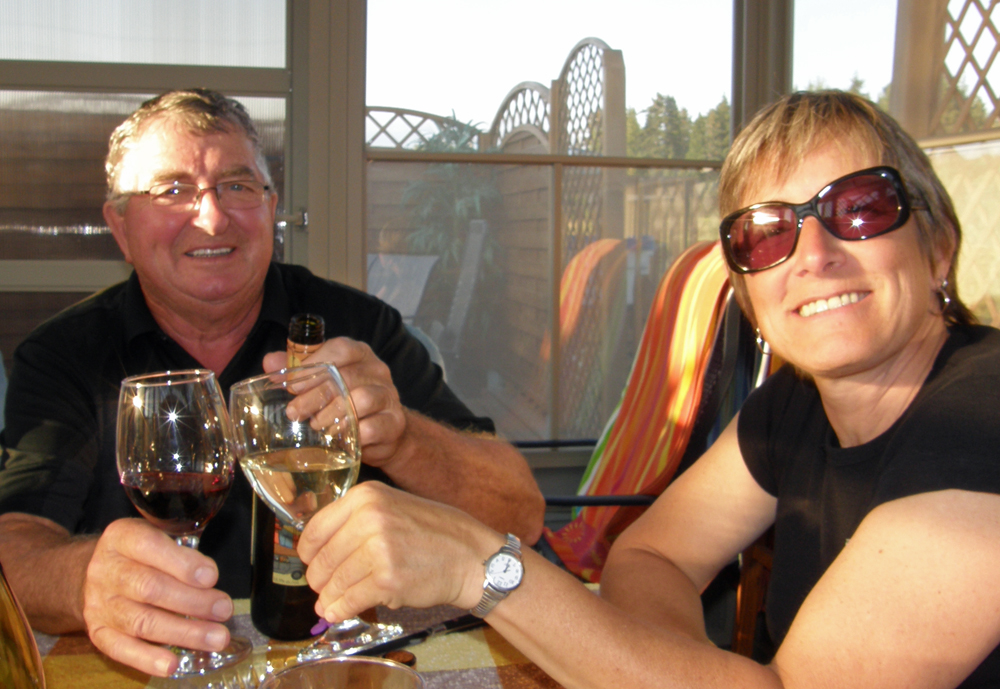 | Lise trinque avec son beau-frère Bernard.
